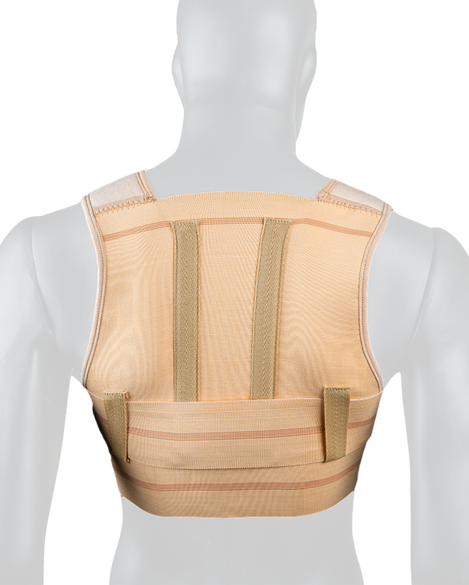 • قرار گرفتن ناحیه کتف در وضعیت آناتومیکی صحیح به وسیله بندهای شانه ای و 2 آتل در قسمت پشتی